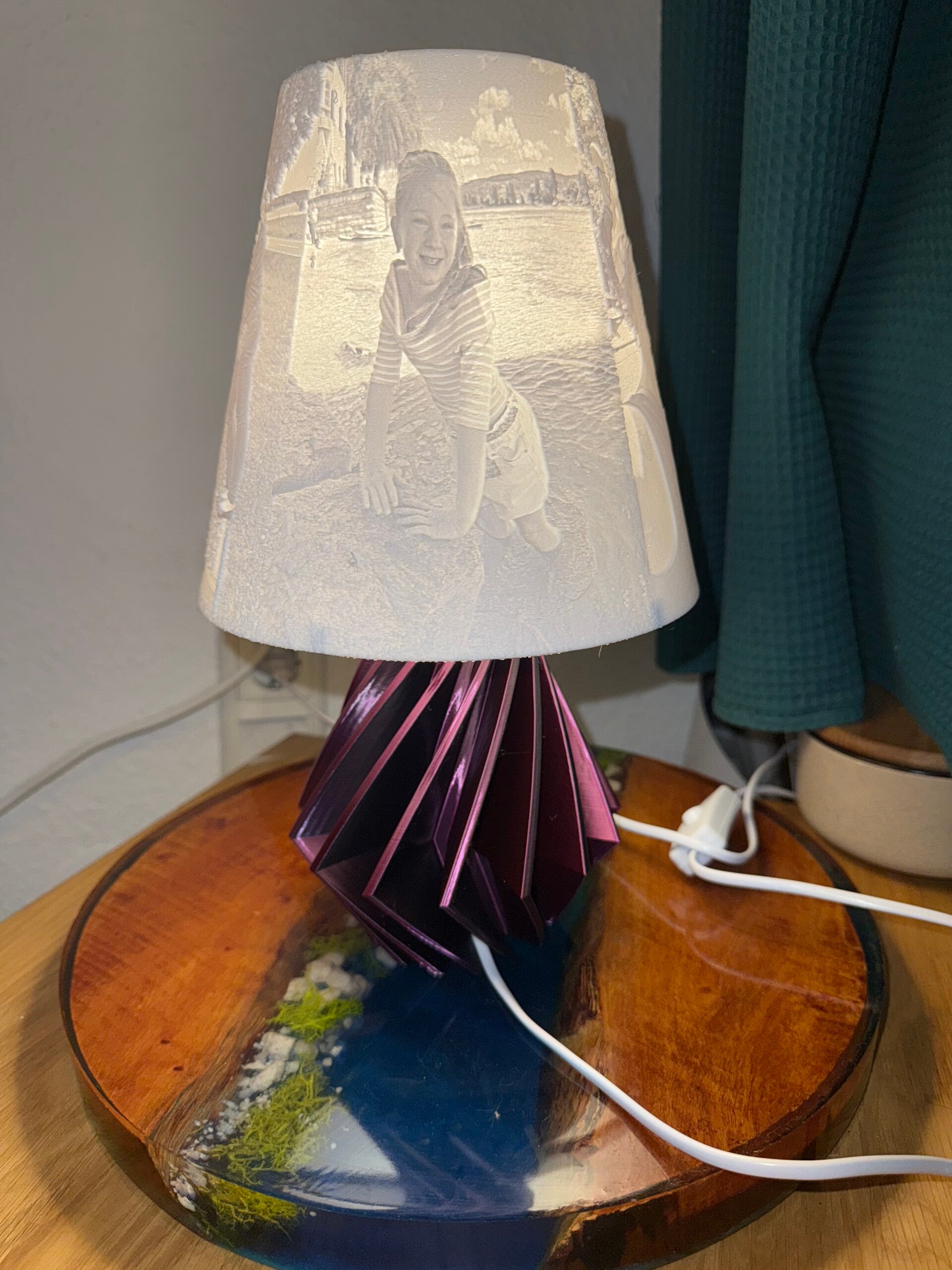 Der Lithophaneschirm hat eine Höhe von cm. Hier können optimaler Weise 3-4 Bilder verarbeitet werden. Zeitlos schön und einzigartig.